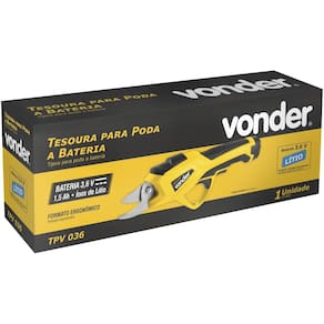 Conteúdo da embalagem: 1 Tesoura para poda. Acompanha: 1 bateria 3,6 V e 1 carregador bivolt automático.