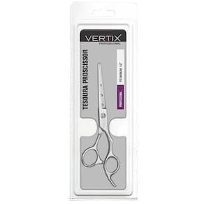Tesoura para cabelo com lâminas 6,0” convexas em aço inox e fio navalha ideal para cortes assimétricos repicados ou desfiados.