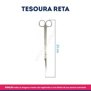 Especificações Marca: Mega Aquários Modelo: Tesoura reta 25cm Material: Aço inoxidável Tamanho: 25m Espessura: 5mm Tamanho da ponta: 1mm largura Apoio para os dedos: 2,5cm diâmetro Peso: 79g