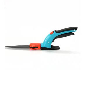 Através da funcionalidade de corte rotativa em 360°, tanto os canhotos quanto os destros podem trabalhar confortavelmente. A empunhadura ergonômica com componentes de plástico macio permite operar o produto com facilidade. As lâminas de corte com gume ondulado e revestimento antiaderente garantem um corte preciso e consistente. A tesoura pode ser bloqueada rápida e facilmente através do botão de bloqueio acionado com uma só mão.