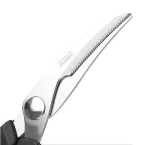 A linha de tesouras Supercort, com lâminas de aço inox e cabos de polipropileno, oferece um modelo para cada ocasião, para, literalmente, cortar a monotonia. Tesoura trinchante com lâminas em aço inox. Cabo de polipropileno com trava. Pode ir à máquina de lavar louças. Para trinchar aves e peixes pequenos, auxiliar na abertura de embalagens na cozinha e dividir massas e pães. Comprimento total: 10 polegadas 250 mm . Peso 180 g. Uso seguro e adequado: Antes da primeira utilização, lave bem a peça e seque-a. Produto cortante e perfurante: tenha cuidado ao manusear e mantenha fora do alcance das crianças. Para uma maior durabilidade dos produtos, recomenda-se secar bem antes de guardar, mesmo após lavagem em máquina. Ean: 7891112001176