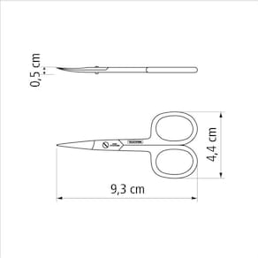 Produzida em aço inox, a tesoura possui lâminas curvas e afiadas desenvolvidas para proporcionar um corte preciso e o acabamento perfeito das unhas. Resistente e durável, que pode ser esterilizado em autoclave.