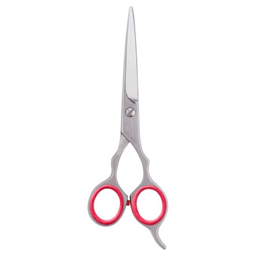 A Tesoura Vertix Red Circle Laser 6,0 possui lâminas em aço inox, com fio serrilhado (laser) que segura a mecha de cabelo e evita que ela escorregue pela tesoura.