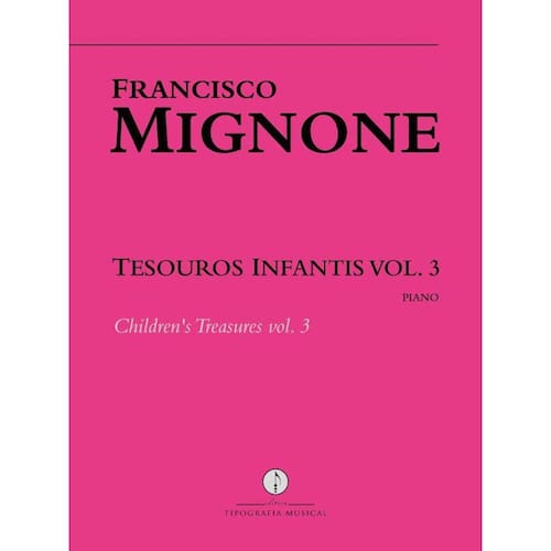 As peças infantis para piano solo de Francisco Mignone (1897-1986) são como pequenas joias da nossa música. Marcadas por grande inventividade e musicalidade, são verdadeiro deleite para seus ouvintes, pequenos ou adultos, e se destacam também pelo seu caráter didático para o ensino do instrumento. Neste terceiro volume da série Tesouros Infantis (piano), apresentamos as partituras das peças que completam toda essa produção do compositor, com supervisão e revisão técnica de Maria Josephina Mignone. Quando eu era pequenino / Manon – valsa / Seis peças infantis (Preludiozinho, Rondó dos pequenos misoneístas, Toada, Você não me pega!..., Sôdade, Cachorrinho está latindo) / A coruja e a águia / Os barqueiros passam / A menina leiteira / Os pombos / A mosca e formiga / O velho, o menino e o burro / O corvo e o pavão / O leão que não era leão / ... E o piano canta, também / Valsinha / O pobre e o rico