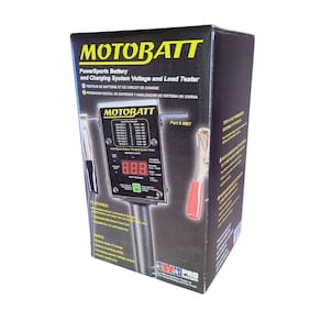 Especificações técnicas (Ficha técnica) Modelo Motobatt MB-T (MBT) Tipo Testador digital de carga (Fixed Load) e analisador de sistema Tensão de aplicação 12V Faixa do voltímetro 0–15V Capacidade de teste em carga (load) 125A (carga resistiva) Limite / CCA Até 400 CCA (uso acima disso pode danificar o elemento de carga) Tipo de teste Temporizado, com desligamento automático Display LED de 3 dígitos + indicadores LED Cabos / garras Conjunto de cabos aprox. 64 cm com garras no padrão powersports Dimensões (aprox.) 239 × 86 × 86 mm