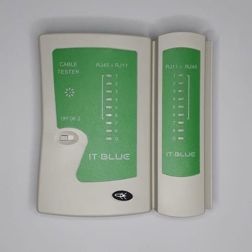 Com esse testador você poderá realizar o teste de cabos de rede no padrão RJ45 (8P8C) e cabos de telefonia no padrão RJ12 (6P6C).