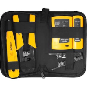 1 Testador de cabo de rede, 1 alicate desencapador de fios e cabos de rede, 1 alicate crimpador, 1 alicate de inserção (punch down) e 1 estojo.