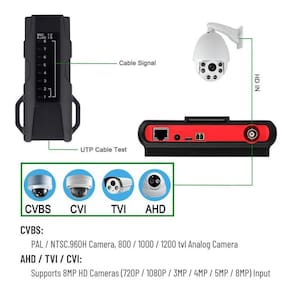 Este testador é capaz de testar e depurar câmeras coaxiais 720p/960p/1080p/3mp/4mp/5mp/8mp ahd cvi e câmera tvi e câmera analógica tradicional cvbs não compatível com câmeras ip e sdi , com visualização de vídeo , monitor de vídeo de tela lcd com alta resolução que pode exibir uma imagem clara ao solucionar problemas de um sistema de câmera de segurança, para uma instalação remota correta.
