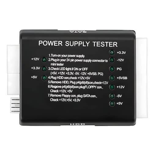 Compatibilidade Universal: Compatível com fontes ATX de 20 e 24 pinos, além de oferecer suporte para conectores P4, PCI-E, Floppy e SATA. Ideal para verificar a fonte de alimentação de desktops e servidores.