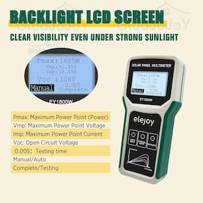 - ?Seu consultor solar? Nosso multímetro solar é a ferramenta perfeita para testar a tensão, corrente e potência de seus painéis solares, ajudando você a avaliar rapidamente se o seu sistema solar está funcionando da melhor maneira. Também permite comparar a qualidade de diferentes painéis solares. Além disso, é ótimo para encontrar o ângulo ou posição ideal para seus painéis, garantindo que você aproveite ao máximo cada raio de luz solar. Pense nisso como seu consultor solar — certificando-se de que seus painéis estejam sempre funcionando com desempenho máximo!