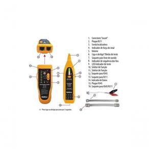 Informações do Produto O localizador e testador de cabos TX1500 tem função de localizar, rastrear e testar cabos mantendo a integridade física da estrutura na qual se encontram. Tratando-se de linhas telefônicas e redes LAN esse aparelho é indicado para o auxílio à instalação, debug e manutenção da mesma. - Anti Inferferência - Display de intensidade de sinal - Rastreamento de fio telefônico e cabo Lan - Identifica fios em sistemaselétricos - Verifique condição de cabo Lan - Teste de continuidade - Sonda de tensão DC - Flash LED Informações Técnicas Alimentação 9V 6F22 Formato de Sinal Impulso multi frequencial Distância Máxima 100m Corrente máxima Emissor 9mA, Receptor 28mA Testador E Localizador De Cabos Multitoc Tx 1500 Kit