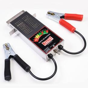 Teste de bateria analógico 500 amperes Teste de bateria eletrônico 500 amperes - kitest Caixa de aço inox polida; Garras grandes com ponta de latão para um melhor contato; Escala de 0 a 16 volts; Teste a carga de bateria; Testa o regulador de tensão;