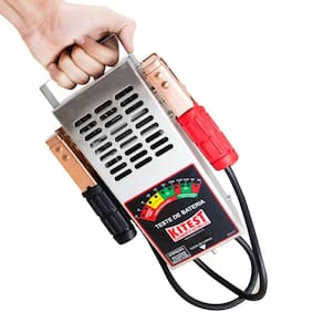 Teste de bateria analógico 500 amperes Teste de bateria eletrônico 500 amperes - kitest Caixa de aço inox polida; Garras grandes com ponta de latão para um melhor contato; Escala de 0 a 16 volts; Teste a carga de bateria; Testa o regulador de tensão;