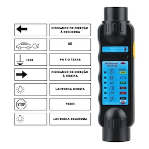 Teste de tomada de engate reboque trailer carretinha 7 pinos 12v Teste de tomada de engate reboque trailer carretinha 7 pinos 12v O teste de tomada de engate serve principalmente para verificar se as ligações de cabeamento foram feitas corretamente de acordo com as normas e especificações técnicas exigidas para o sistema de engate. Ela garante que cada pino da tomada está conectado à função elétrica correta como luzes de freio, indicadores de direção, etc. , conforme as normas vigentes. Essa verificação é essencial para assegurar que o sistema elétrico está em conformidade com as exigências de segurança e operação, prevenindo possíveis falhas ou mau funcionamento durante o uso. Além disso, ajuda a garantir que as luzes e outros dispositivos do reboque funcionarão corretamente quando conectados ao veículo, o que é crucial para a segurança na estrada. Importante: se ao conectar a tomada de teste ao seu engate ela não acender, isso indica que a instalação do cabeamento elétrico não está correta. É necessário corrigir a instalação para que atenda às normas e especificações técnicas exigidas pelo conselho nacional de trânsito contran . Principais funções de uso: Manutenção preventiva: realizar testes regulares pode ajudar a detectar e corrigir problemas antes que se tornem sérios, evitando falhas inesperadas durante o uso do reboque. Diagnóstico de problemas: ajuda a identificar problemas elétricos, como fios desconectados, curto-circuitos ou falhas em componentes, que possam impedir o funcionamento adequado das luzes do reboque. Verificação das conexões elétricas: garante que todas as conexões elétricas entre o veículo e o reboque estão funcionando corretamente. Isso inclui a verificação de luzes de freio, indicadores de direção, luzes de ré, luzes de posição e, em alguns casos, a alimentação elétrica para o reboque. Este testador tem um lado para conectar o plugue de 7 pinos de um trailer e outro lado para conectar o soquete da tomada de engate 7 pinos de um carro. Ideal no setor comercial e privado, para oficinas, aluguel de carros e reboques, comércio de acessórios, etc. Feito de plástico abs e cobre, que é durável e pode ser por muito tempo durante sua longa vida útil. O design ergonômico do soquete de reboque de 7 pinos garantirá seu trabalho de alto desempenho. Este testador de reboques pode ajudá-lo a verificar rapidamente a falha do circuito dos veículos e do sistema elétrico dos reboques. Para que serve o teste de tomada de engate Se você é um proprietário de um trailer, carretinha ou qualquer outro veículo que necessite de um engate, é importante saber se a tomada do engate está funcionando corretamente. O teste de tomada de engate é uma ferramenta que ajuda a verificar se a conexão elétrica entre o veículo e o trailer está funcionando adequadamente. O teste de tomada de engate é essencial para garantir que as luzes do trailer, como faróis, luzes de freio e luzes de sinalização, estejam funcionando corretamente. Além disso, ele também verifica se o sistema de freios elétricos do trailer está funcionando adequadamente. Como funciona o teste de tomada de engate O teste de tomada de engate é fácil de usar e não requer nenhuma habilidade técnica. Ele consiste em um dispositivo que é conectado à tomada do engate do veículo e que emite sinais sonoros e luminosos para indicar se a conexão elétrica está funcionando corretamente. Especificações: Tensão: 12v Material principal: abs e cobre Cor: preto fosco Tipo de item: ferramentas de diagnóstico Nome do item: trailer testador Tamanho: aprox. 20 5 4 cm Tipo de bateria: 9v acompanha o kit Imagem ilustrativa