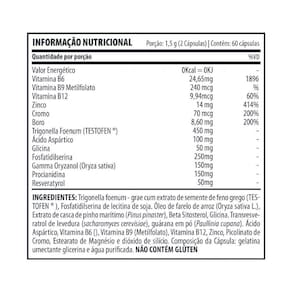 Demon T Demons Lab Você não apenas investe em seu bem-estar, mas também em uma série de benefícios para qualidade de vida e para o seu cotidiano, o suplemento Demon T será um aliado constante para você. Essencial para quem busca aumento da massa magra, força e alcançar metas de peso. Sua fórmula otimizada promove o bem-estar geral, fornecendo energia, força vital e disposição para treinos e exercícios, dentro ou fora da academia, sendo seu aliado para um alto desempenho a todo momento. Benefícios: Propriedades que podem trazer benefícios ao bem-estar do seu corpo em geral; Atua no ganho de massa; Força e resistência; Pode atuar ao seu desempenho; Contribui para a energia e síntese proteica; Benefícios especifico para homens e mulheres; Pode atuar aos níveis de açúcar; Vitalidade; Pode beneficia a pele; Antioxidante; Contém Resveratrol; Minerais em sua composição, dando mais benefícios ao produto; Rico em nutrientes como vitaminas B6, B12 e B9, Fe.No, zinco e cromo. A semente de fe.No grego pode potencializar a força, resistência e até ao pós-treino. Quando combinado com o mineral boro, pode otimizar a absorção de vitaminas e minerais, oferecendo um suporte completo. Essa combinação premium de zinco, vitamina B6, saponinas e boro é perfeita para atletas e para quem busca energia, força e disposição no dia a dia. Sugestão de uso: Consumir 1,5 2 capsulas ao dia ou conforme recomendação profissional nutricional. Marca: Não Informado