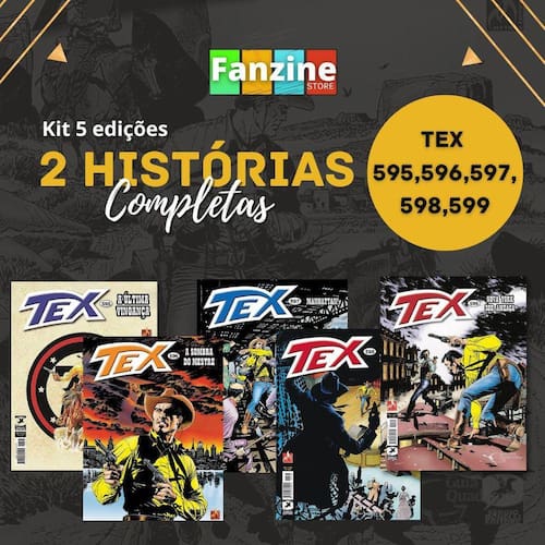 4. O Combo Tex - 595 a 599 inclui outros materiais, como pôsteres ou cards? R: O combo inclui apenas as 5 edições do Tex, cada uma com 2 histórias completas. Não estão inclusos pôsteres ou cards adicionais.