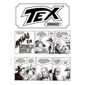 Quem é Tex... Tex Willer é o mais famoso personagem dos quadrinhos da Itália. Criado em 1948 por Gianluigi Bonelli (textos) e Aurelio Galleppini (desenhos), começou a ser publicado em formato de tiras semanais com 32 páginas. O incrível sucesso que alcançou levou a que, posteriormente, suas histórias começassem a ser publicadas em revistas no formato 16 x 21 cm, como acontece até hoje. Nascido numa época em que os “bons” eram os brancos e os “maus” eram os índios, Tex antecipou-se aos tempos e integrou-se na vida dos pele-vermelhas ao casar-se com a índia Lilyth, tornando-se, depois, chefe da tribo navajo com o nome de Águia da Noite, e sendo também o agente do Governo na reserva. Antes, foi um fora da lei procurado pelas autoridades porque decidiu justiçar todos os que assassinaram seu pai. Inocentado, entrou para o corpo dos rangers para combater as injustiças. Quase sempre acompanhado pelo inseparável parceiro Kit Carson, e muitas vezes também pelo filho Kit Willer e pelo navajo Jack Tigre, Tex tem um senso inato de justiça, que muitas vezes o leva a ultrapassar os limites da Lei. Irônico, honesto, inteligente, inimigo jurado da burocracia, de qualquer forma de corrupção, dos poderosos sem escrúpulos e das obtusas hierarquias militares, Tex é um herói puro, um justiceiro sem superpoderes, um homem completo. Uma espécie de utopia, porque o bem nem sempre vence o mal, mas é, sobretudo, a personificação de uma ideia... a de que nesta sociedade da indiferença sobreviva o conceito de justiça. Esta coleção contará a saga de Tex desde a primeira aventura, em edições semestrais, sempre com um número colossal de páginas. Esta coleção contará a saga de Tex desde a primeira aventura, em edições semestrais, sempre com um número colossal de páginas. Esta coleção contará a saga de Tex desde a primeira aventura, em edições semestrais, sempre com um número colossal de páginas. E já prepare-se para o TEX OMNIBUS 3, com 740 páginas e as histórias clássicas A Mão Vermelha, O Filho de Tex e Drama em Pecos City, e ainda interessantes matérias. Tex Omnibus Vol. 2 compila os seguintes arcos: Missão em Devil’s Hole Ken Logan, o Duelista O Salto do Diabo O Rapto de Lilyth A Quadrilha dos Dalton A Flecha da Morte Aventura no Rio Grande