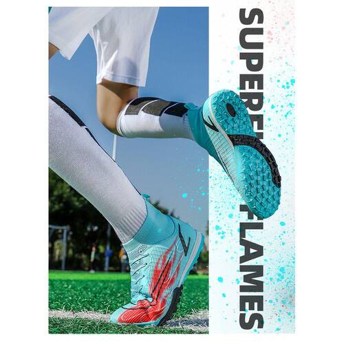 Alta parte superior sintética de alto desempenho combinada com gola têxtil proporciona um ajuste leve, é uma boa opção de sapato de futebol A gola de alto ajuste cria um ajuste seguro e de apoio e protege o tornozelo Sourada na parte superior para durabilidade, sola externa Borracha antiderrapante com alta aderência Equipe de trabalho profissional com boa tecnologia de acabamento de produção Amplos usos: treinadores de futebol, competição, caminhadas, corrida, é adequado para grama l, jogos de borracha, grama artificial e solo firme, solo duro, etc. .