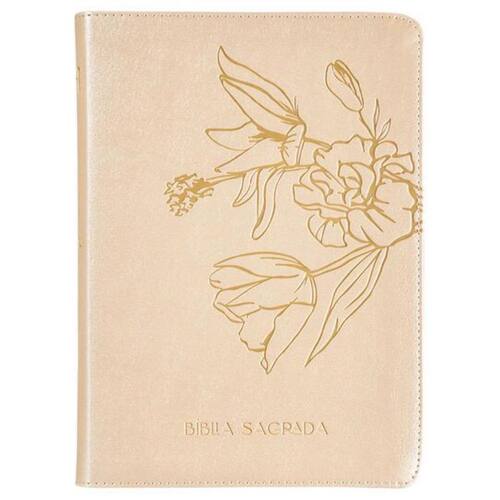 The Purpose Book - Biblia Sagrada, A21, Capa Couro-Soft Bege, Flores