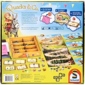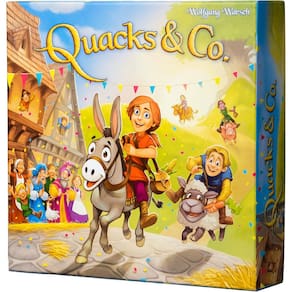 É dia de corrida em Quedlinburg e, com a combinação certa de comida e sorte, você montará sua montaria para a vitória e reivindicará o caldeirão dourado.Mit Quacks & Co. nach Quedlinburg apresenta uma jogabilidade semelhante a The Quacks of Quedlinburg, com cada jogador construindo seu próprio saco de fichas ao longo do jogo, depois sacando essas fichas para tentar se promover até a vitória.Cada jogador começa o jogo com sua montaria no início da pista e uma bolsa que contém quatro fichas de sonho, uma ficha amarela 1, duas fichas vermelhas 1 e uma ficha vermelha 2. Em um turno, você tira uma ficha de sua bolsa e a coloca no seu tabuleiro de animais. Se você tirar uma ficha colorida, coloque a ficha no seu tabuleiro de animais, avance seu animal na trilha tantos espaços quanto o número na ficha e, em seguida, execute o efeito dessa cor: fichas vermelhas você ganha 1-3 rubis, amarelo fichas permitem que você jogue um dado para um bônus aleatório, fichas verdes permitem que você dê outro turno ou devolva uma ficha comprada para sua bolsa, e fichas azuis permitem que você mova extra ou atualize uma ficha.Se você desenhar uma ficha de sonho, coloque-a em uma das nuvens do seu tabuleiro de animais. Depois de comprar e colocar uma terceira ficha de sonho, use todos os rubis em seu tabuleiro para comprar novas fichas - não há duas da mesma cor, lembre-se - então coloque essas novas fichas e todas as fichas compradas anteriormente em sua bolsa. Continue se revezando até que alguém chegue ao final da pista e vença!Mit Quacks & Co. nach Quedlinburg inclui um tabuleiro de jogo de dupla face para uma corrida mais curta ou mais longa; fichas laranja e roxa que fornecem novos poderes, como avançar tantos espaços quanto o número de rubis que você possui; e tabuleiros de ação de dupla face para cada tipo de ficha colorida, permitindo que você jogue com diferentes conjuntos de ações de jogo para jogo