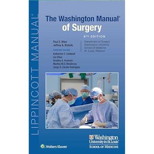 Focusing on must-know information in the broad spectrum of general surgery, The Washington Manual® of Surgery, 9th Edition, provides concise, high-yield content essential for surgical residents, attendings, medical students, and others who provide care for patients with surgical disease. Edited by Drs. Paul E. Wise and Jeffrey A. Blatnik, and written by teams of Washington University residents and faculty, this bestselling manual presents state-of-the-art, comprehensive information in a brief, outline format, along with numerous figures, tables, algorithms, and images throughout. In one convenient, portable resource, you’ll find practical ... erage of all surgical subspecialties (thoracic, GI, colorectal, cardiac, vascular, breast, trauma, critical care, and more)—all at your fingertips for quick review and reference.
