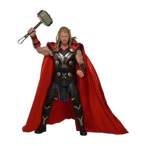 Apresentando um retrato incrivelmente realista do ator Chris Hemsworth, Thor veste seu traje mais recente do Mundo das Trevas e vem completo com seu poderoso martelo Mjolnir.