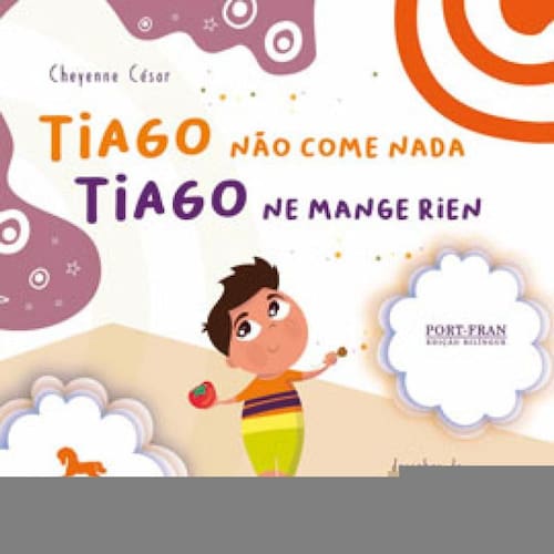PORTUGUÊS Tiago gosta muito de comer e adora coisas gostosas: doces e guloseimas são seus preferidos! Fora isso, ele se recusa. Todos estão muito preocupados com ele. Mas Tiago prefere passar fome a comer o que não gosta. Papai e mamãe tentam achar uma solução para ajudar Tiago a provar coisas novas e variar sua alimentação. Mas ele não gosta desta ideia. O que fazer para ajudar Tiago a descobrir novos sabores? FRANCÊS Tiago adore manger et aime les bonnes choses : les bonbons et friandises sont ses préférés ! À part ça, il refuse tout. Tout le monde s’inquiète pour lui. Mais Tiago préfère s’affamer que de manger ce qu’il n’aime pas. Maman et papa essaient de trouver une solution pour l’aider à gouter de nouvelles choses et à varier son alimentation.
