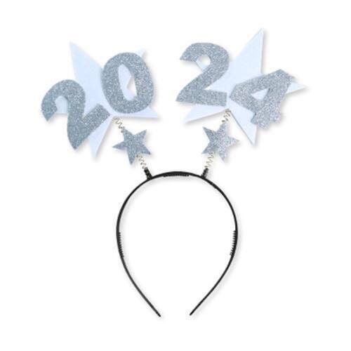 Celebre a magia do Ano Novo com nossa deslumbrante tiara de festa com mola, Tiara 2024 Prateado Ano Novo. Esta tiara é a escolha perfeita para adicionar um toque de brilho e sofisticação à sua celebração de Réveillon.