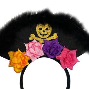 Tiara Pirata Caveira E Flores Hallloween Assustador Bruxa
