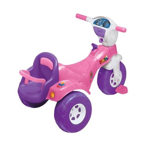 O Triciclo Tico Tico Baby da Magic Toys proporciona muita alegra e lazer. Com cores vivas e lúdicas torna passeio muito mais divertido. Possui funcionamento a pedal, assento anatômico, porta-luvas, chave, câmbio, cadeirinha para bonecas e rodas gigantes. Suporta até 20 kg.