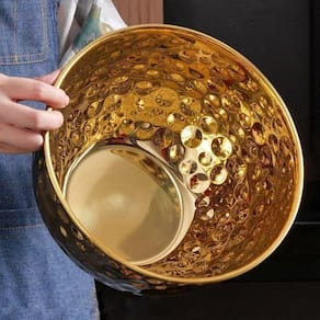 Este bowl dourado é o toque de requinte perfeito para servir com sofisticação. Seu design luxuoso agrega estilo e praticidade a qualquer ocasião especial.