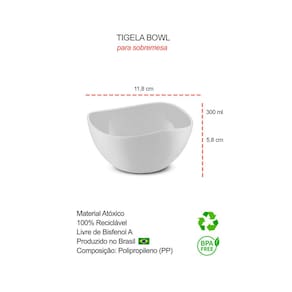 Contem: 6 Tigelas Capacidade: 300 ml Medidas: 5,8 x 11,8 x 11,8 cm Material: Polipropileno PP