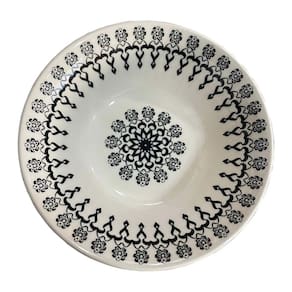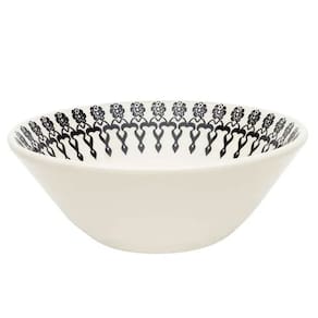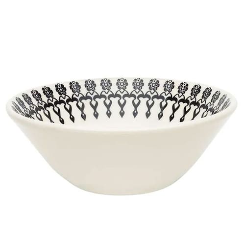 A estampa alegre adiciona um charme único, quebrando a sobriedade do preto e deixando a peça com um ar mais jovem e atual. Já o interior liso da tigela mantém a sofisticação, criando um equilíbrio visual que se destaca em qualquer mesa.