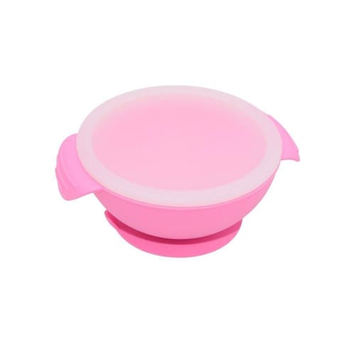 Tigela De Silicone Infantil Com Tampa E Base De Sucção Rosa Oxford