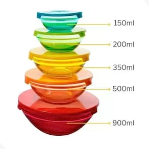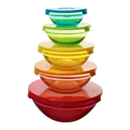 Conjunto com 5 tigelas em vidro e tampa plástica, com capacidades diferentes para se adequar com cada necessidade na hora de armazenar seus alimentos. Vidro de excelente qualidade, com 2,5 mm de espessura, eles podem ser utilizados no freezer e na geladeira para congelar, além de poder ser lavado em máquina lava-louças.