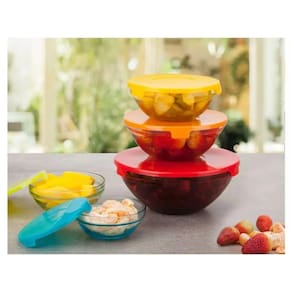 Seu diferencial está na variedade de capacidade dos recipientes, pois, torna mais opções na hora de ordenar sua geladeira ou armário, ou até mesmo na hora de preparar alimentos. Além do design moderno e material resistente, cada modelo vem com uma cor de tampa, para dar aquela alegria à sua cozinha.