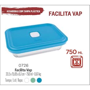 Tigela de Vidro com Tampa Facilita Vap 750ml 03 Pote Médio