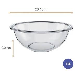 Fabricada em vidro temperado de alta qualidade, esta tigela de preparo é durável e resistente, o que a torna adequada para uso em diferentes temperaturas, desde alimentos quentes até gelados. Sua transparência permite visualizar o conteúdo dentro da tigela, facilitando o monitoramento do processo de preparo ou armazenamento dos alimentos. O design redondo da tigela é clássico e atemporal, adaptando-se facilmente a qualquer estilo de cozinha ou mesa de jantar. Sua superfície lisa facilita a limpeza e manutenção, tornando-a uma opção prática para o dia a dia. Embora esta tigela não acompanhe tampa, sua versatilidade permite que seja utilizada para misturar ingredientes, servir saladas e armazenar sobremesas.