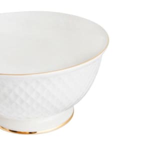 A Tigela Eclat Gold possui 14 cm com capacidade de 600 ml é ideal para servir diversos tipos de alimentos como cereais, frutas, guarnições, sopas, saladas e muitos outros alimentos de sua preferência. A tigela é toda confeccionada em porcelana.