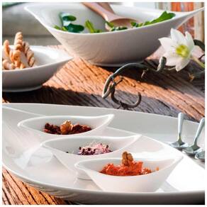 Esta tigela pequena em estilo campestre moderno da Villeroy Boch é uma escolha perfeita para servir molhos e petiscos em qualquer ocasião. Seu formato curvo elegante a torna ideal para acomodar uma variedade de molhos, como ketchup, mostarda, wasabi, guacamole ou salsa, além de nozes, azeitonas e outros petiscos.