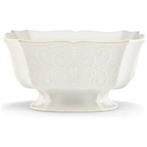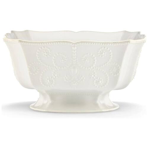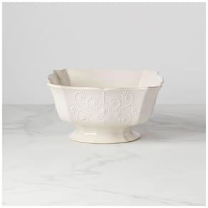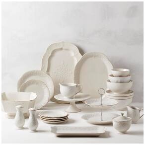Este item essencial para entretenimento, com um tamanho generoso de 26,7 centímetros (10,5 polegadas), é projetado para ser o centro das atenções em qualquer reunião. Pode ser utilizado tanto como prato de servir quanto como peça de destaque na mesa. Feito de grés durável, faz parte da coleção French Perle da Lenox, uma das mais populares da marca.