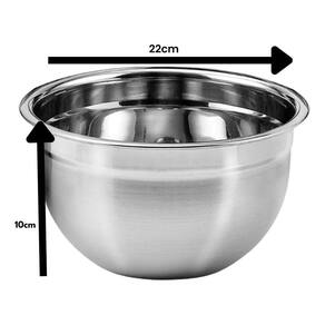 Bowl Redondo em Aço Inox - 22cm de Circunferência, 10cm de Profundidade Este elegante bowl de aço inox é o aliado perfeito para sua cozinha Com 22cm de circunferência e 10cm de profundidade, ele oferece espaço amplo para preparar suas massas de bolo favoritas, criar saladas frescas ou armazenar alimentos com praticidade e estilo. Características: Material Durável: Feito em aço inox de alta qualidade, garantindo resistência e durabilidade. Design Funcional: Profundidade ideal para misturar ingredientes sem respingos, facilitando o preparo de receitas. Multiuso: Perfeito para preparar, servir e armazenar uma variedade de alimentos. Fácil de Limpar: Superfície lisa que facilita a limpeza após o uso. Ideal para: Preparar massas de bolo, muffins e outras sobremesas. Servir saladas frescas com estilo. Armazenar alimentos na geladeira ou na despensa de maneira organizada. Adicione um toque de elegância e funcionalidade à sua cozinha com este bowl versátil em aço
