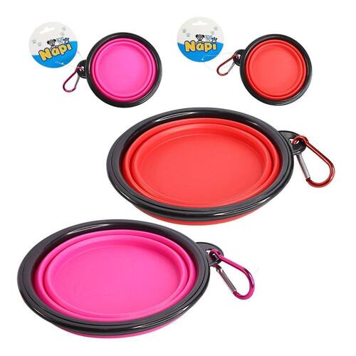 Tigela para água 350ml retrátil - rosa/vermelho a solução ideal para manter seu amigo sempre hidratada em qualquer lugar que estejacom um design inovador e super conveniente, este pote é perfeito para viagens, passeios no parque, caminhadas ou qualquer atividade ao ar livre que não tenha um local para o pet se hidratar, é retrátil e não ocupa muito do espaço, podendo ser leva no bolso ou pendurado em algum local graças ao seu suporte já incluso. Com uma capacidade de 350ml, é ideal para o seu cão, sendo uma maneira prática e segura de garantir que seu pet esteja hidratado e saudável onde quer que estejam. Feito de materiais de alta qualidade, não é atóxico, além de possuir uma ótima durabilidade, podendo ser transportado sem preocupações. Especificações:material: plástico e siliconedimensões: diâmetro: 13cm x alt. Fechado: 1cm x alt. Aberto: 5cmcor: rosa/vermelho enviado de forma conforme a disponibilidade no estoque peso: aprox. 60g contém:01 tigela retrátil para água
