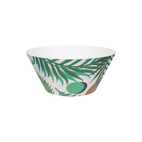 Tigela Pequena Summer Tropical - Oxford Aproveitando as vantagens da fibra de bambu, que são a leveza e a segurança, a Oxford dispõe de uma linha ideal para uso em áreas ao ar livre, como piscinas e jardins. São peças perfeitas para confraternizações com a família e amigos nestes locais. A estampa colorida, com destaque para a cor verde, é perfeita para quem adora um clima tropical. Esses itens são ideais apenas para servir alimentos, não podendo ser utilizados para cortá-los. Os produtos feitos com fibra de bambu não podem ser aquecidos ou levados ao forno micro-ondas. No entanto, podem ser colocados na lava-louças porque a temperatura da água é menor do que a temperatura atingida no micro-ondas.