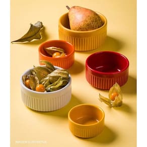 Nossa nova linha de ramekins foi pensada para resistir a altas temperaturas. As peças vão ao forno, micro-ondas e também podem ser lavados na máquina de lavar louça. São peças perfeitas para suflês, molhos e cremes. Nossos ramekins são peças antiaderentes, mantêm o calor de forma uniforme e são empilháveis, o que facilita muito o armazenamento em espaços compactos.