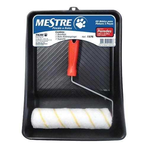Kit Reparo 3 peças Tigre, ecônimia e praicidade para quem quer reformar e inovar a pintura de sua casa Carcteríticas: Marca: Tigre Tinta: Látex e Acrílica Superfícies: Parede Rugosa Ítens Inclusos: ÍtensTamanhoSuporte Ref. 130223cmRolo Antirrespingo Ref. 137623cmBandeja Ref. 230423cm Imagem Meramente Ilustrativa