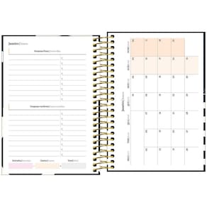 - Capa: dura. - Capa acabamento: com detalhe metalizado. - Conteúdo: Controle financeiro, Metas e objetivos, Página de listas e Página para planejamento do futuro. - Cor: diversas. - Espiral: Colorido. - Folhas: decoradas. - Formato: 129mm x 187mm. - Gramatura: 63 g/m². - Material: Capa Dura Com Acabamento Metalizado. - Número de folhas: 176 folhas. - Parte interna da capa decorada: Sim. - Produto certificado: FSC. - Visão: diária exceto sábado e domingo.