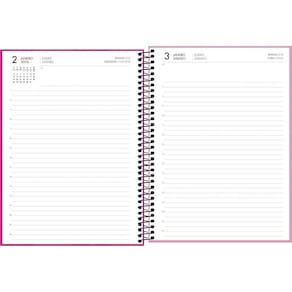- Bolsa: plástica. - Capa: dura. - Capa acabamento: com detalhe metalizado. - Cor: diversas. - Formato: 200mm x 275mm. - Gramatura: 63 g/m². - Material: Capa Dura Com Acabamento Metalizado. - Número de folhas: 200 folhas. - Parte interna da capa decorada: Sim. - Planejamento anual: Sim. - Planejamento mensal: Sim. - Produto certificado: FSC. - Visão: diária.