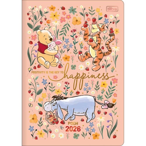 Se você busca um produto inspirado nas principais tendências de moda para se organizar, o planner grampeado Pooh é a escolha perfeita. O produto tem tamanho 17,8 x 25,4 cm, capa flexível com detalhes metalizados e folhas com visões anual e mensal. Este planner 2026, que possui 20 folhas em papel creme, com gramatura de 90 g/m², é escolha ideal para anotações objetivas de tarefas e compromissos.