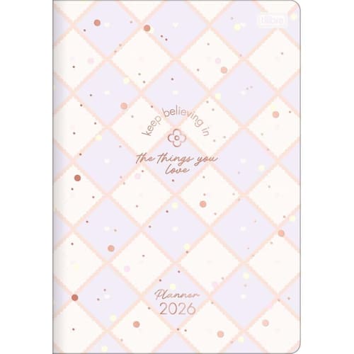 Tilibra - Planner Grampeado 17,8 x 25,4 cm Soho 90 G 2026 - Fundo Xadrez Lilás - TILIBRA